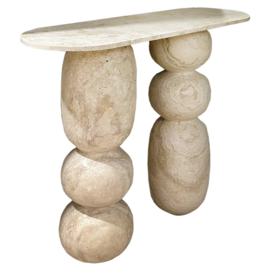 Troia Light Travertine Designer Cone Shape Legs Console Polished
