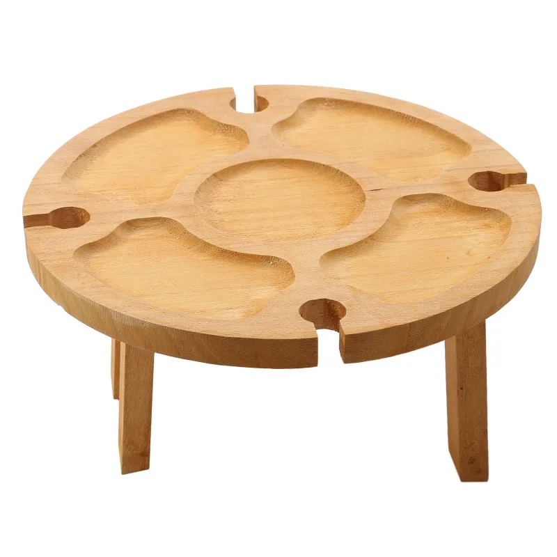 ChâteauEase Bamboo Folding Wine & Snack Table | 2-in-1 Round Picnic Tray With Glass Holder for Garden & Outdoor Gatherings