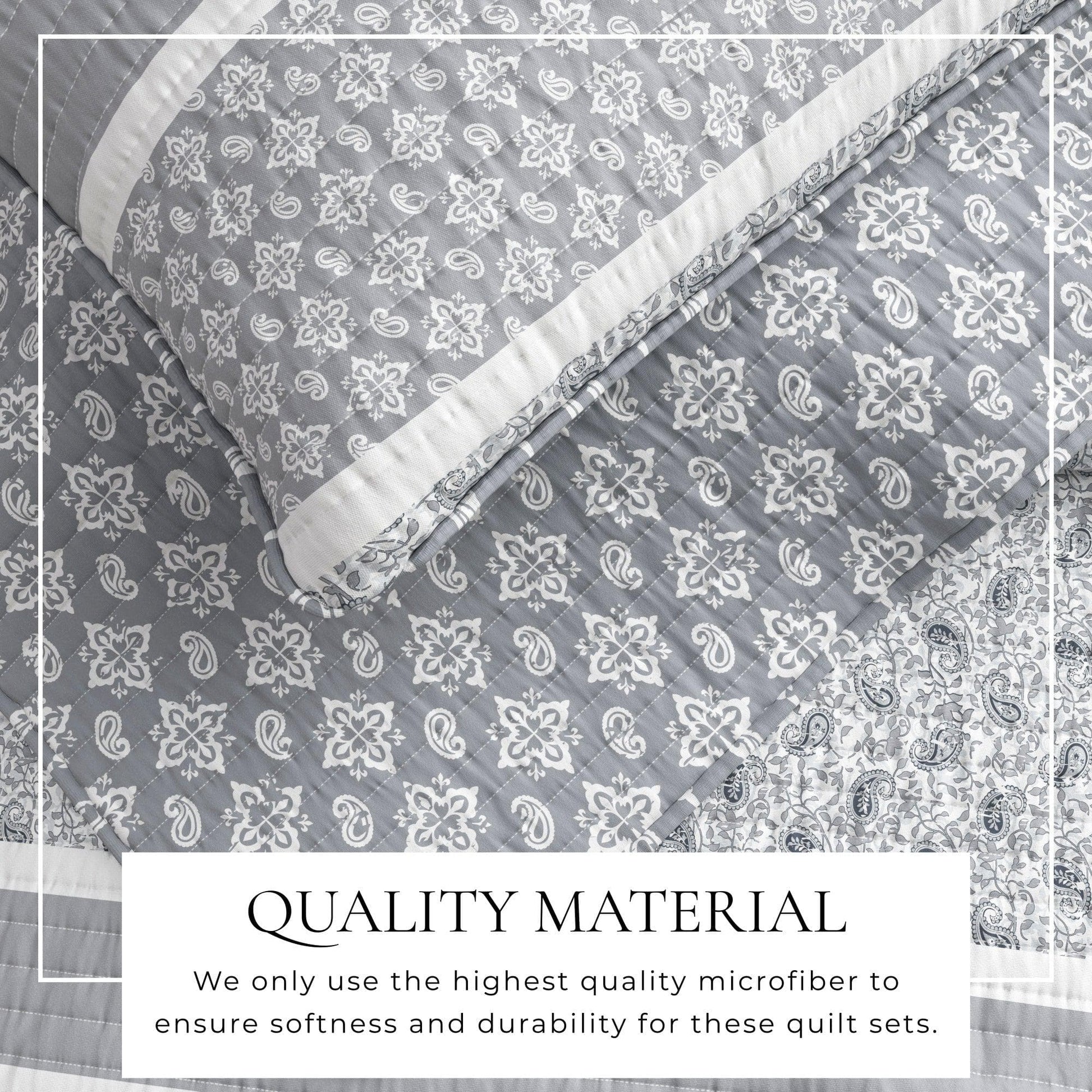 The striped pattern 3-piece floral quilt set from our Kadi Collection is crafted from a blend of sumptuous 100% Polyester fibers. This floral quilt set is durable, soft, and easy to care for. Choose your favorite and discover relaxation with style.