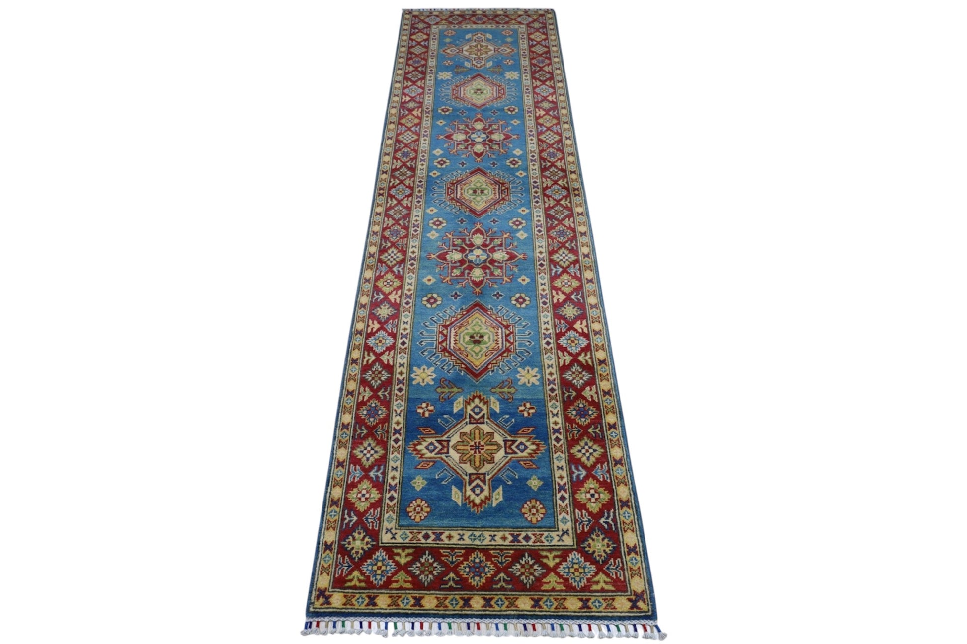 Hand-Knotted Afghani Kazak Wool Rug – 2’9″ x 9’9″