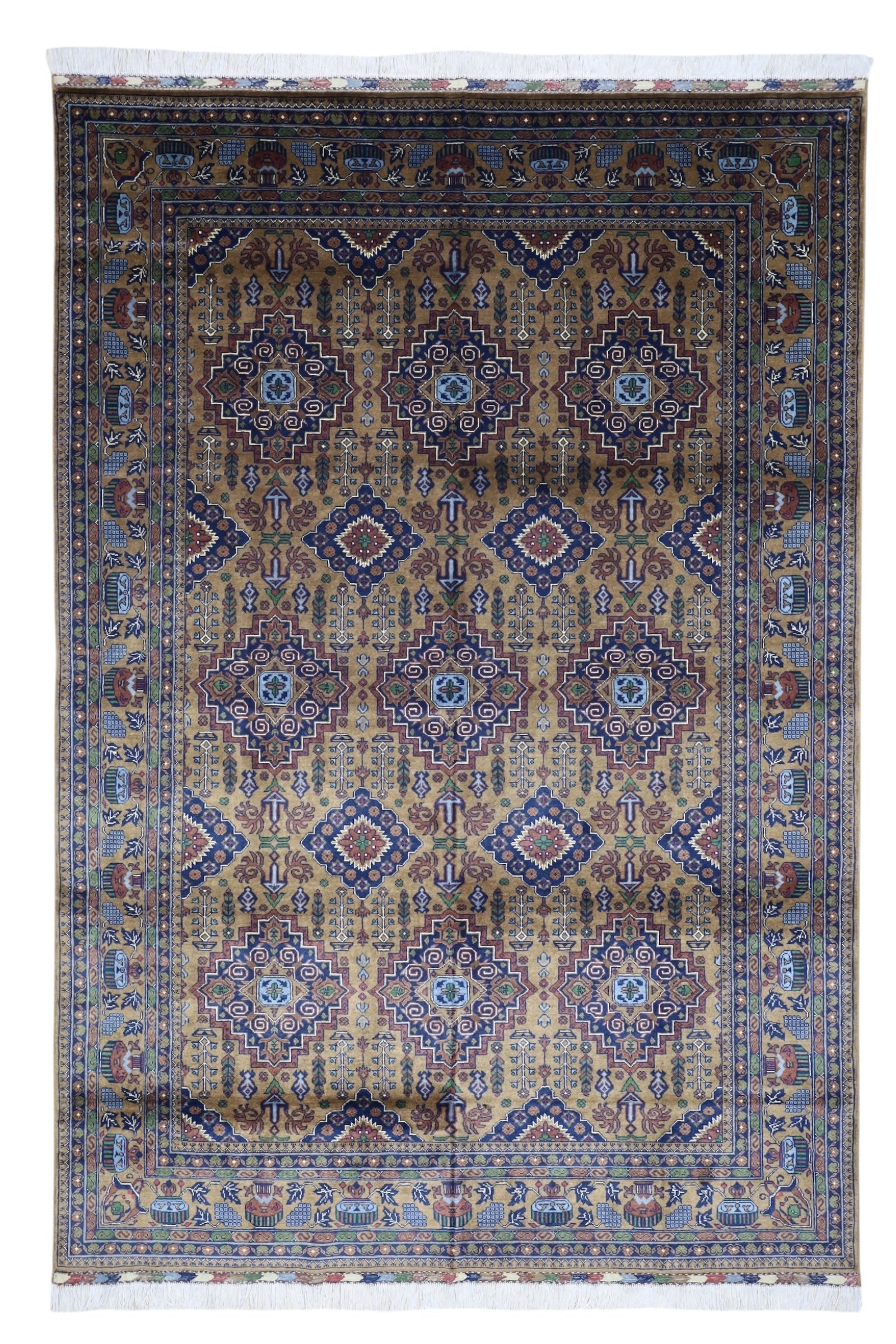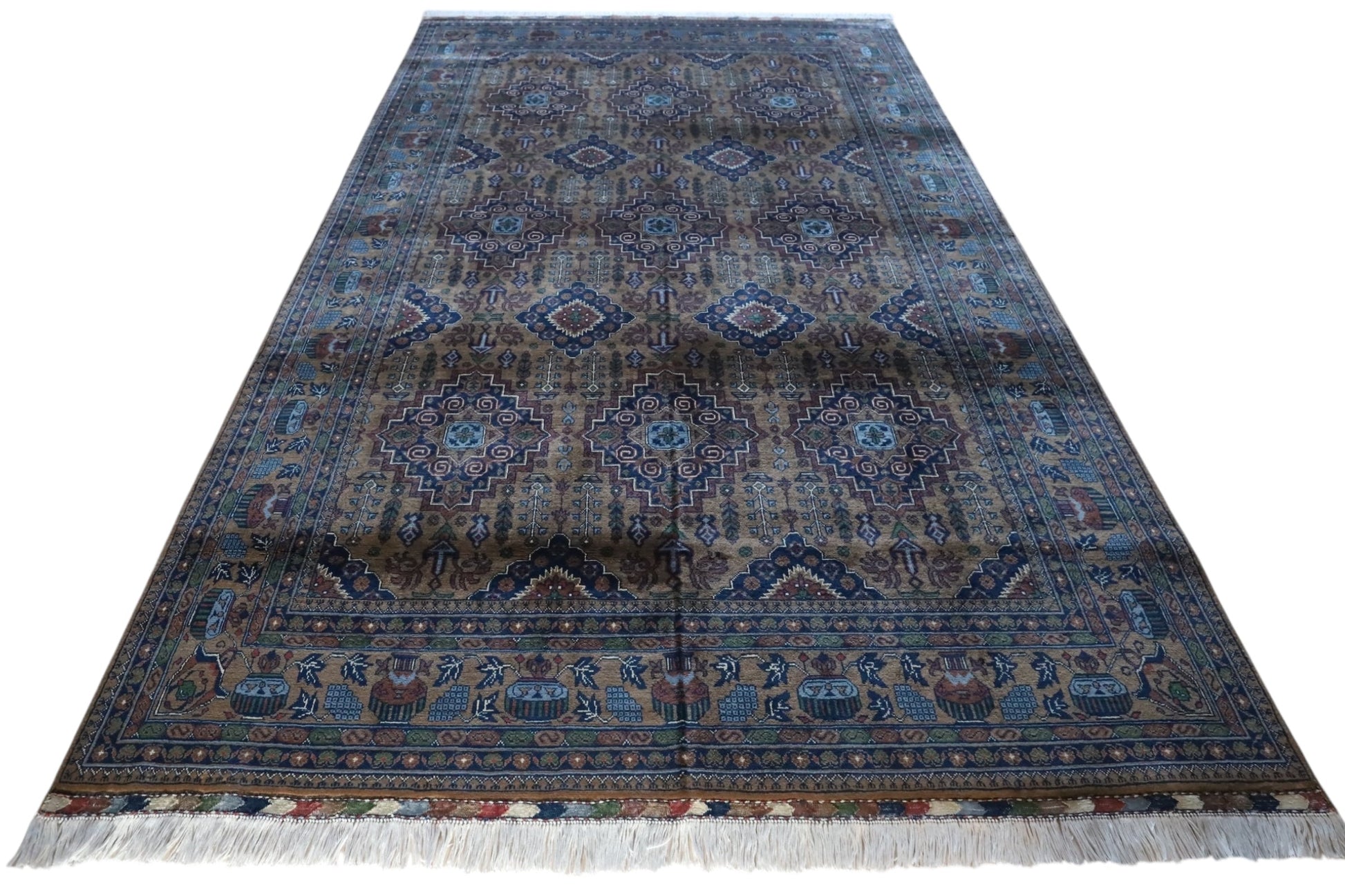 Afghan rugs are celebrated worldwide for their exceptional craftsmanship and durability. This Zerkhaki rug, created using traditional Turkish or Persian knotting techniques, is designed to withstand the test of time. Each piece is sourced directly from Afghan artisans, ensuring authenticity and attention to detail. The natural dyeing process imparts unique variations in color, making every rug truly one of a kind.