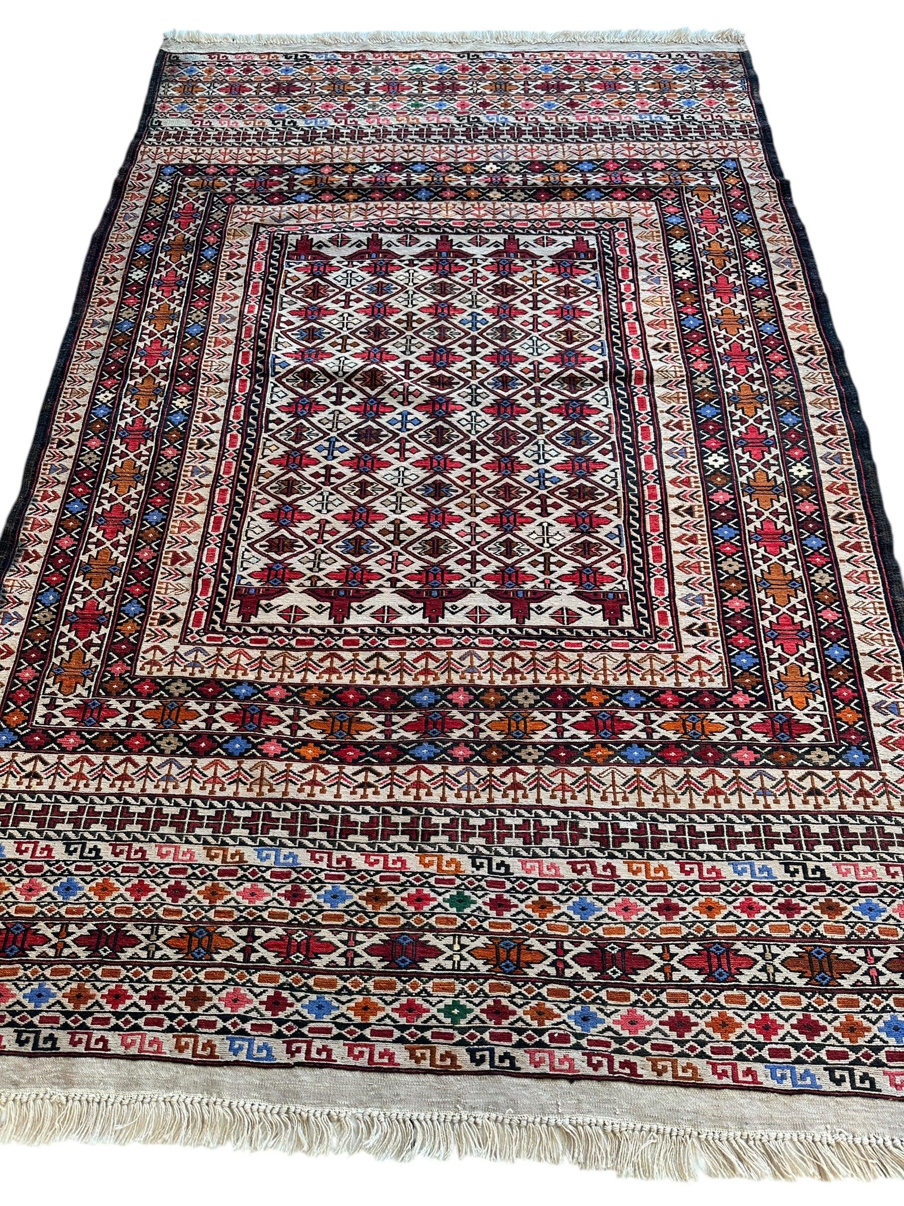 Hand-Woven Afghani Maliki Soumak Wool Kilim Rug - 4'2" x 6'6"