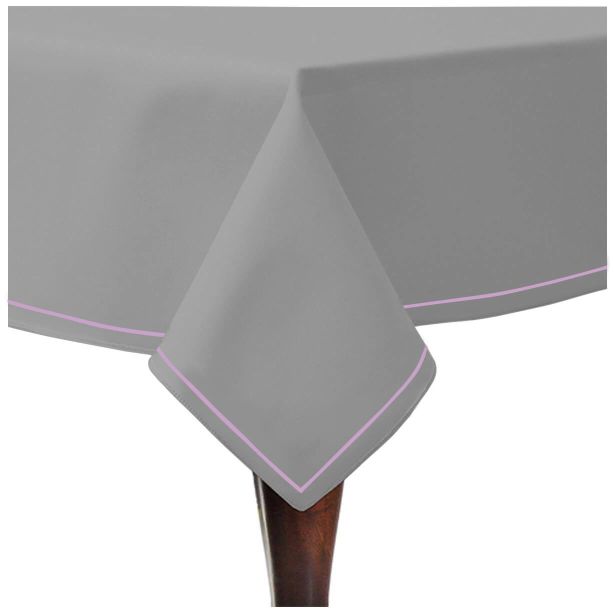 Single Embroidery Border Sateen Cotton Solid Table Cloth - Light Grey