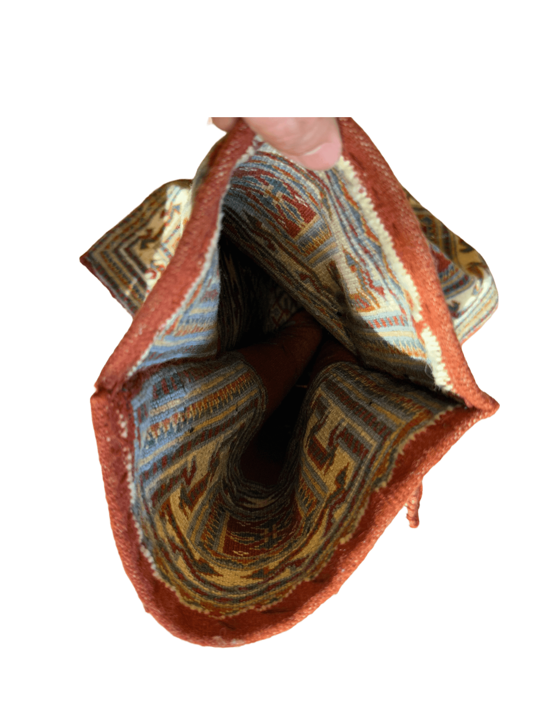 This fine nomadic salt bag rug is has amazing natural dyes and is just shining. Stunning colors and a great choice for display.